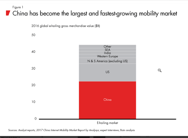 China, one of Toyota’s biggest market, has an e-hailing market worth US$23 billion. It is more than the rest of the world combined, according to a report by consulting firm Bain & Company (see Figure 1).