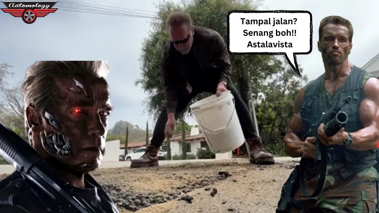 Ingat di Malaysia sahaja yang ada isu jalan berlubang dan lambat dapat perhatian pihak berwajib sampaikan Lando Zawawi turun padang tolong tampalkan jalan. Rupanya di Los Angeles, Amerika Syarikat pun sama. Lagi menarik, pelakon A-List Hollywood yang juga bekas hero filem Terminator dan bekas Gabenor California, Arnold Schwarzenegger, juga mengambil inisiatif yang sama, iaitu menampal sendiri jalan berlubang yang mengganggu penduduk kawasan kejiranannya.