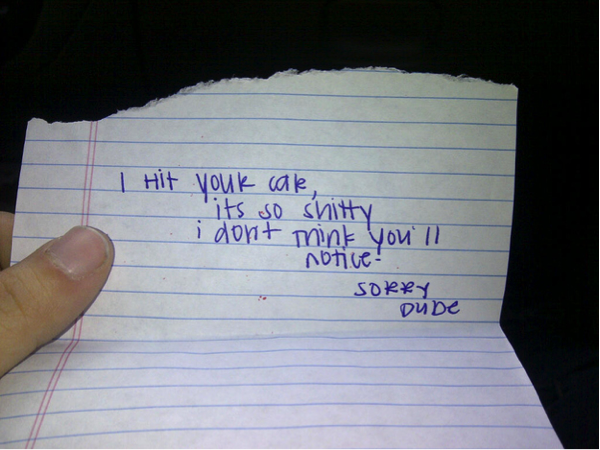 You’ve come across this now and then, be it on the giving or the receiving end. Automologist, SU, has had her share of being on the receiving end (“all good, just so you know”). She shares here some of the funniest, most dreadful and ghastly notes ever left on car windshields: