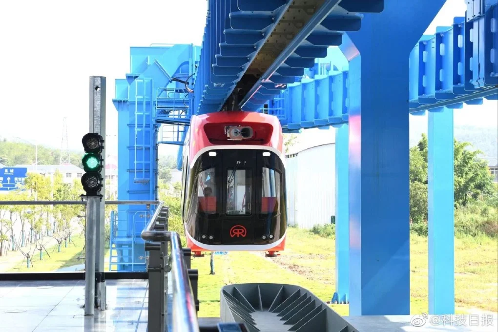 China Introduces Maglev “Sky Train” That Hangs From Its Rail
