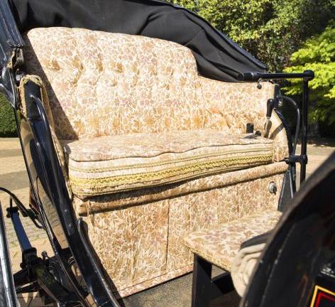 The Pope Waverly was built in Nebraska and sold for US$1,600 at that time. If you find somewhere to drive this electric phaeton around, you can luxuriate on button-back floral-fabric bench seat or a rear-facing occasional seat. It has of course been updated with modern batteries and charging system, but is still manoeuvred using a tiller, so it still retains much of its old-fashion charm.