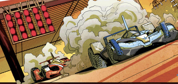 The story revolves around the Formula New series and several main characters, as the Red Racing team aims to take down Stargazer. Adding weight to the series is the addition of a backing soundtrack that comes with every page, which totally immerse readers in this post-apocalyptic world.