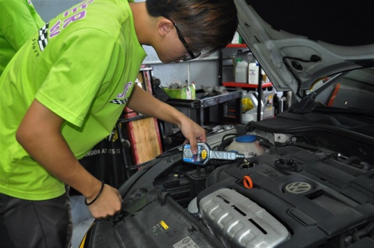 A VW gets its engine flushed with X-1R’s Engine Flush.