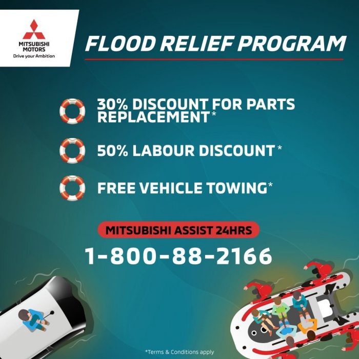 • Perkhidmatan tunda kenderaan secara PERCUMA untuk semua pemilik kenderaan Mitsubishi yang terjejas akibat banjir 2021.