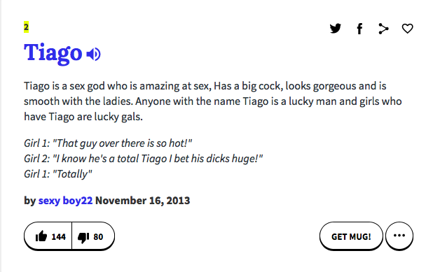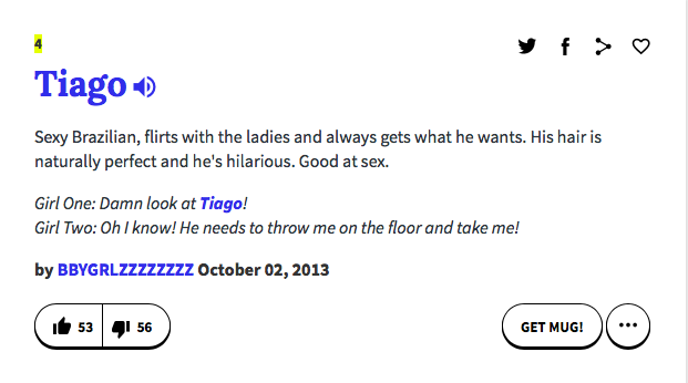 And then there’s others which made this writer snicker at her screen: “a sex god who is amazing at sex” (note the double use of the word “sex”) and “Sexy Brazilian, flirts with the ladies and always gets what he wants.” We’re not sure that all the drivers of the Tiago would protest to that.