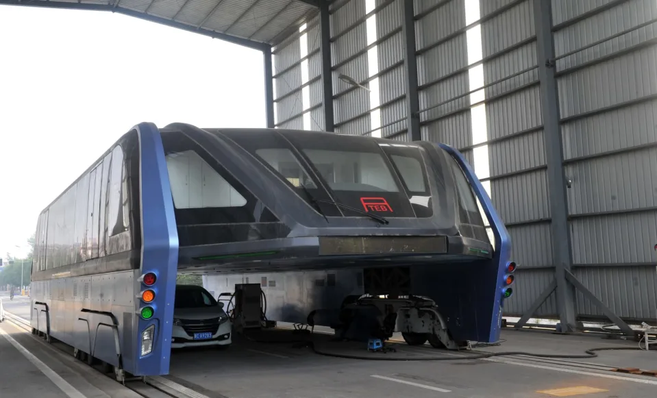 Back in May 2016, we wrote the headline: “Shanghai plans elevated bus service, what could possibly go wrong?”. The plan was to create a bus service that could carry 1,200 passengers per vehicle and would glide above the city’s otherwise congested streets, leaving the cars still stranded in the congestion below. The Transit Elevated Bus, or TEB, was supposed to revolutionise city commuting for a fraction of the price of a subway system.