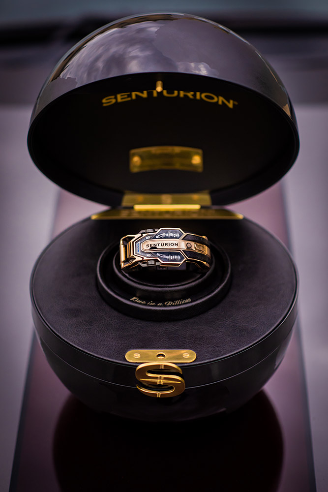 The owner of the supercar hands over the vehicle’s spare key and the clever people at Senturion will take it apart—okay, reverse engineer it—and transfer the encrypted security onto a miniaturised system that fits into the bracelet. The bracelet then replaces the function of the original key—unlocking/locking the car and starting/stopping the engine—except it’s much cooler: the small parts in the bracelet rotate whilst the car unlocks and it is one of the most beautiful wearable tech we have seen.
