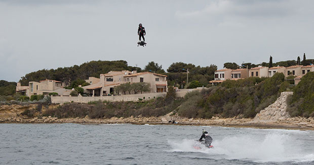 The Flyboard Air will still be in the prototyping phase for awhile, but Zapata Racing already has a range of water-propelled devices on the market; those are tethered to a watercraft by a long hose, but they look like a real good time, nonetheless. Have US$5,500 to spare?
